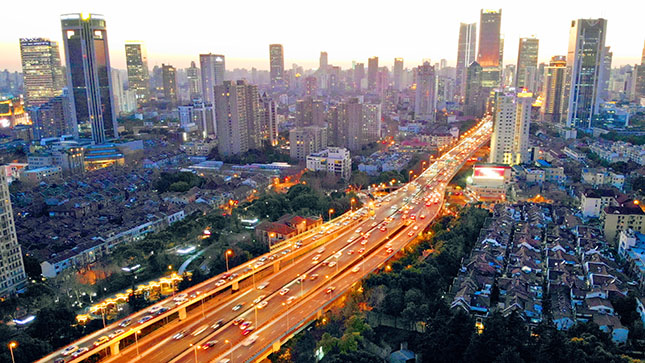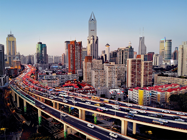在傍晚延安东路立交桥逐渐拥堵,南北高架路与延安高架路再次进入拥堵状态。不少网友感叹上海终于复苏了。
