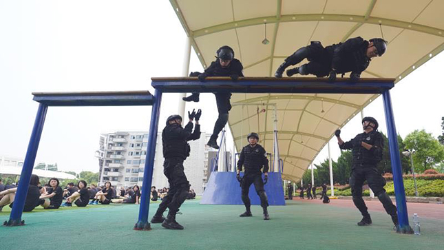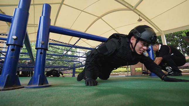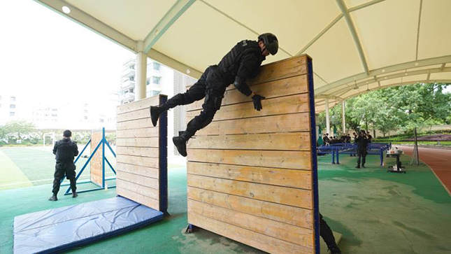 6月1日,上海黄浦公安分局特警夏季大练兵在特警总队训练场进行。训练场上热火朝天,越障、射击、战术冲房演练……特警队员们完成动作一丝不苟、干净利落。