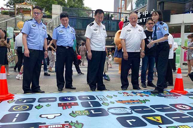 7月2日上午,上海市公安局交通警察总队联合上海市精神文明建设委员会办公室、徐汇区文明办、徐汇公安分局等单位,在徐汇正大乐城举办了“一盔一带”安全守护行动主题宣传日,暨“安全斑马线”交通公益潮玩展。以《幸“盔”有你,“带”上安全》为主题,倡导安全出行,呼吁交通安全。