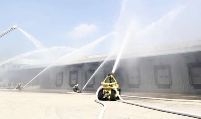 为做好冷链物流仓库场所消防安全工作,日前,奉贤消防救援支队联合多部门举行了一场大型冷链仓库物流火灾事故综合演练。
