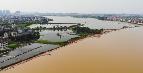 随着防汛压力不断增大,在位于鄱阳县城附近的昌江圩堤上,江水正逐渐逼近堤坝坝顶。