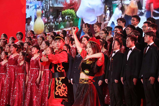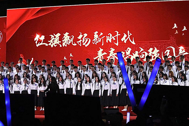 本次歌会以“红旗飘扬新时代,青春唱响强国音”为主题,十三支师生歌队、教工舞蹈协会、学生笛箫协会等共同呈现出一台精彩纷呈的晚会。