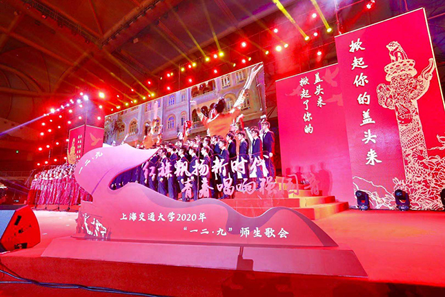 12月9日晚,为纪念“一二·九”运动85周年,激励广大师生以奋进姿态迎接中国共产党成立100周年,上海交通大学2020年“一二·九”师生歌会拉开帷幕。
