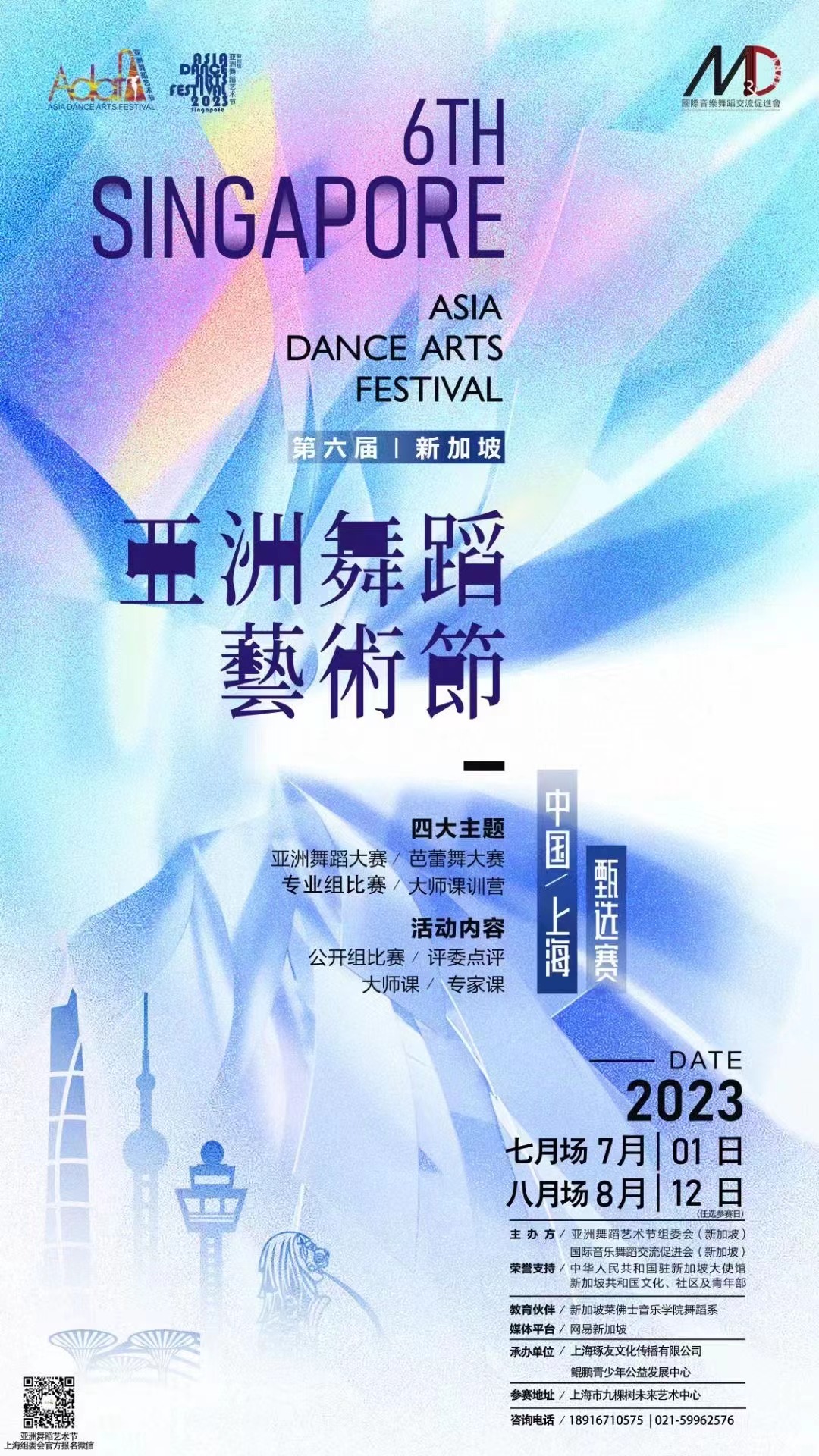 此次舞蹈艺术节涵盖亚洲舞蹈大赛、芭蕾舞大赛、专业组比赛、大师课训练营等四大主题,由中华人民共和国驻新加坡大使馆支持,亚洲舞蹈艺术节组委会(新加坡)以及国际音乐舞蹈交流促进会(新加坡)主办,以新加坡莱佛士音乐学院舞蹈系和中国文化中心为合作伙伴,旨在提高美育教育质量,开拓学生眼界,为学生和舞蹈机构提供更优质的服务和更专业的平台。