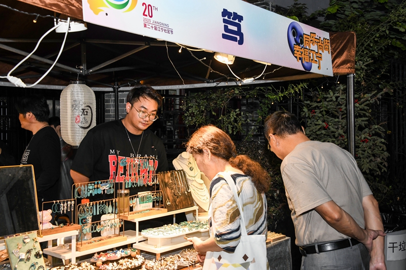 在江宁社区节20周年之际,江宁路街道联手同乐坊文化创意园区、尚街Uyao55园区,以做深做活活动经济、创新“夜间消费”体验为抓手,向街道商会、楼宇、园区、重点企业及16个居民区发起“幸福摊主招募令”,多方面融合商、文、旅资源,创设多样化消费场景,市集横跨同乐坊和尚街Uyao55两个相邻园区,形成“同乐尚街 幸福江宁”生活市集。