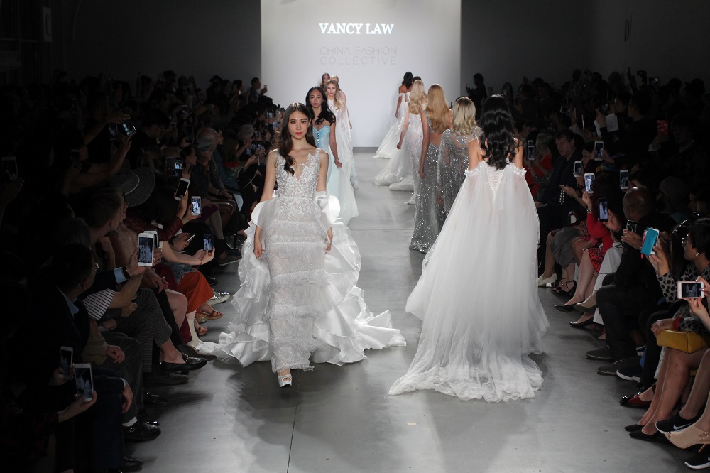 (模特们展示品牌VANCY LAW2018春夏系列时装)