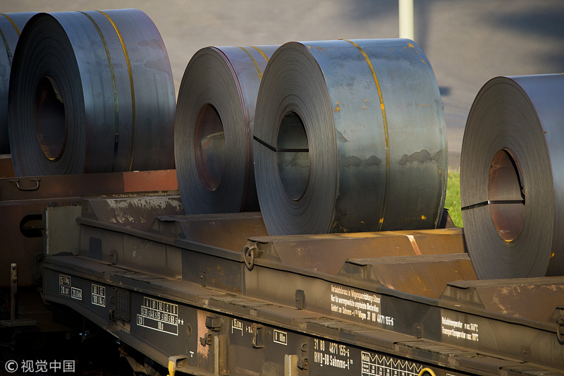 美国宣布对欧盟征收钢铝关税后,引发德国强烈不满。图为德国出口至美国的钢铁。视觉中国