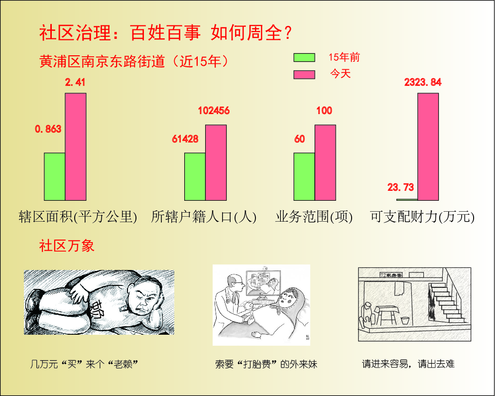 近15年来,街道实际情况发生了巨变,我们选取黄浦区南京东路街道作为样本: