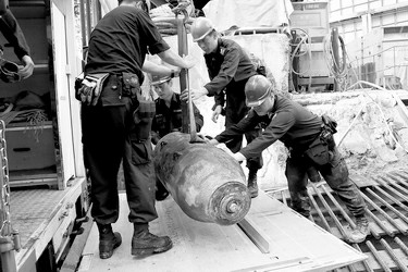 炸弹处置组高级警司袁汉荣介绍,拆弹人员采取水磨低温切割方式在弹壳上仔细操作,挖出两个直径约20厘米的圆孔将火药取出,用可控燃烧的方式,分两次将全部450公斤TNT炸药耗尽。燃烧中,发生了两次轻微可控爆炸,系炸弹的两个引信被引爆。