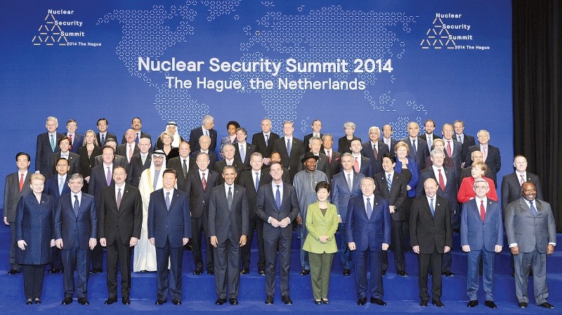 习近平在海牙出席第三届核安全峰会第二天会议,期间同与会领导人集体合影。 新华社记者 张铎摄