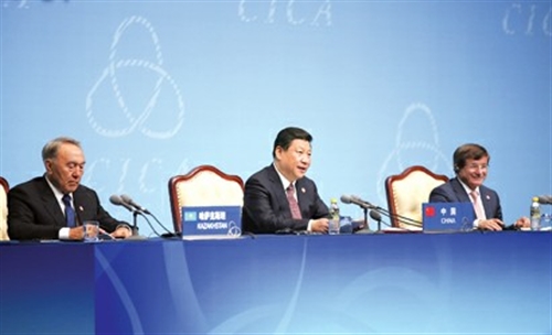 新华社上海5月21日电 (记者耿学鹏 李志晖)亚洲相互协作与信任措施会议第四次峰会21日在上海世博中心闭幕,亚信主席国中国国家主席习近平和亚信倡议国哈萨克斯坦总统纳扎尔巴耶夫,亚信上届主席国土耳其总统特别代表、外长达武特奥卢共同会见记者。