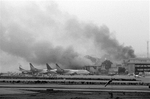 武装分子与安全部队的交火发生在机场一个用于要员航班和货物运输的区域。一名不愿公开姓名的情报部门官员在机场说,部分武装人员穿机场安保人员制服,其中一人试图抢夺一辆机场专用车,被警卫开枪击毙同时身体爆炸,据信身上携带着炸药;另一名毙命武装人员也带着炸药。
