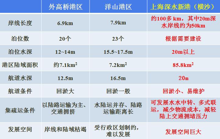 上海深水新港与现有港区比较表