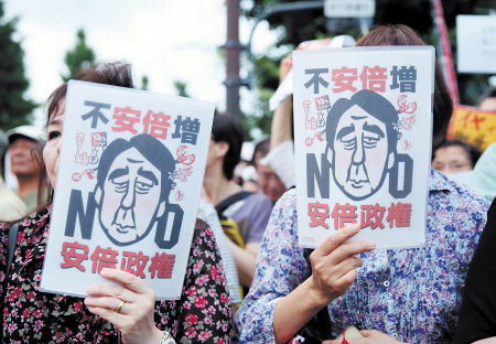 据新华社东京6月30日电 (记者 刘秀玲 冯武勇)30日晚,约1万名日本东京民众在首相官邸前举行示威,抗议日本首相安倍晋三试图修改宪法解释以解禁集体自卫权。