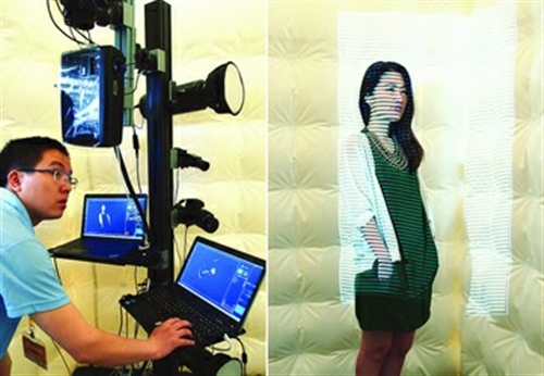 昨天,观众现场体验3D人体打印技术(拼版照片)。 新华社发