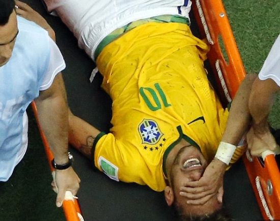 在与哥伦比亚的1/4决赛中,内马尔被对方后卫苏尼加从背后用膝盖撞倒,当即痛苦倒地,被担架抬离球场,并紧急送往福塔莱萨的圣卡洛斯医院。