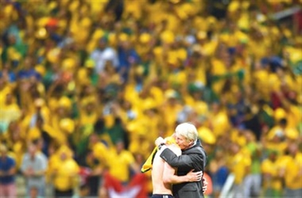 半决赛后费尔南德斯搂紧金杯、满眼伤神的模样,让旁观者体验心碎,故事的结局便足够温暖人心——费尔南德斯将那座陪伴自己度过七届世界杯、150余场巴西队比赛、24年光阴的奖杯送给了身旁的德国球迷——“带它去决赛吧,你们配得上冠军。”