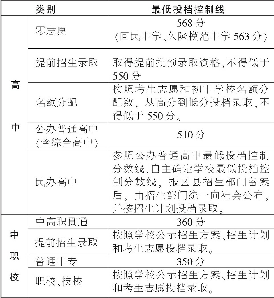 昨天,上海市教育考试院公布了2014年高中阶段学校招生最低投档控分线,其中市实验性示范性高中“零志愿”为568分,“提前批”及“名额分配”为550分,“公办普通高中”为510分,分别比去年降低了5分、3分和13分。