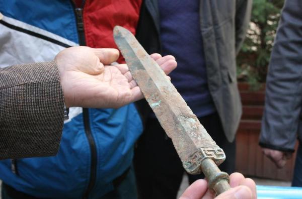 丹凤县一名工人在作业时发现约3000年前战国青铜古剑,主动上交文物部门。 @Abdurusul_摄影记者 图