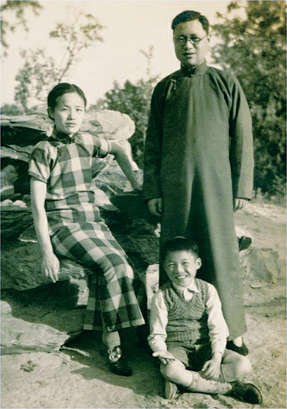 1936年春,顾廷龙与妻潘承圭、子顾诵芬在颐和园。