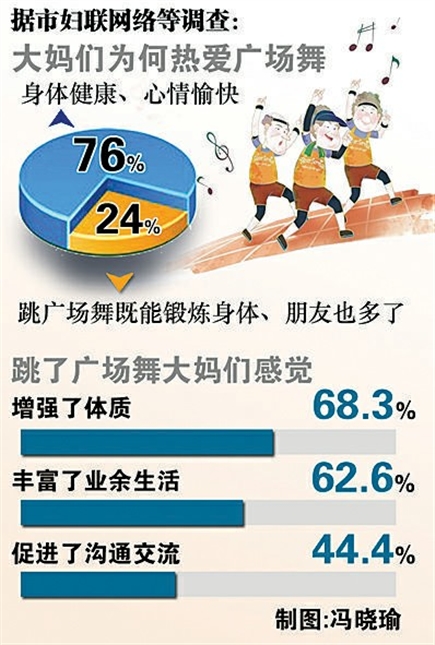 在今年“两会”上,市人大代表陈甦萍提交题为《疏导结合,让中国大妈的晚年生活多姿多彩——对上海广场舞管理的一点思考》的书面意见,建议加强政府管理,变无序为有序,让中国大妈心仪的广场舞真正成为一项其乐融融的群众文化娱乐活动。