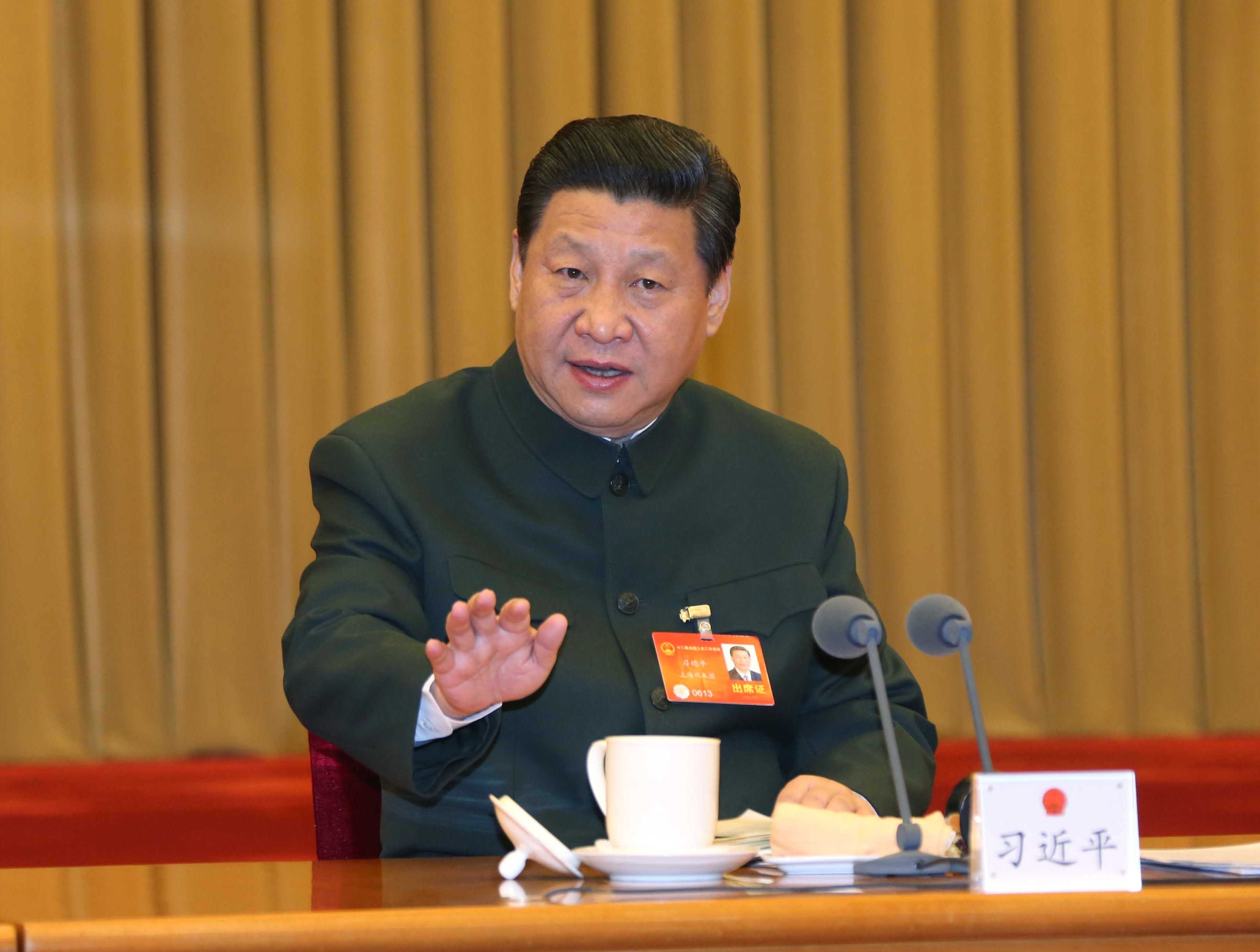 (2014年3月11日,习近平出席十二届全国人大二次会议解放军代表团全体会议)