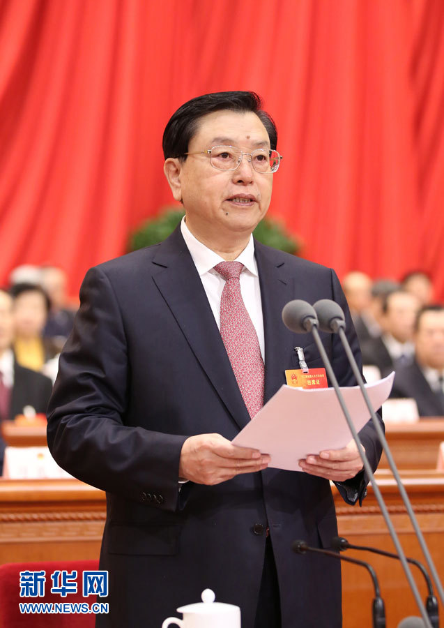 3月15日,第十二届全国人民代表大会第三次会议在北京人民大会堂举行闭幕会。张德江主持闭幕会并讲话。