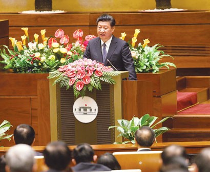 11月6日,习近平在越南国会发表题为《共同谱写中越友好新篇章》的重要演讲。 新华社记者 庞兴雷 摄