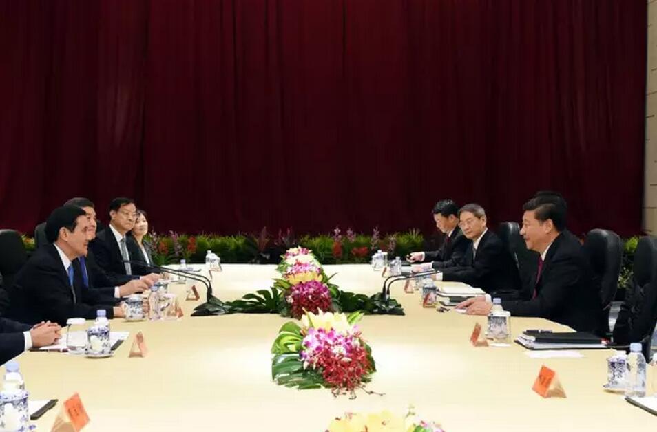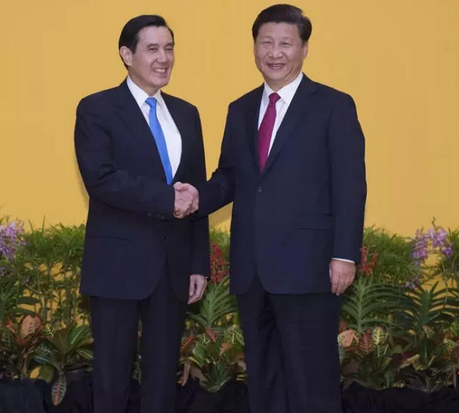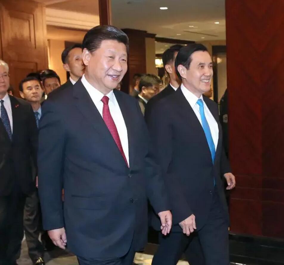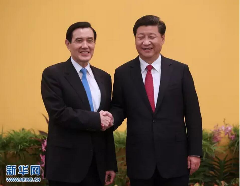 当地时间下午3时,习近平、马英九同时步入会见大厅。在数百名中外媒体记者的瞩目下,在响成一片的快门声中,两岸领导人的手紧紧握在一起,共同翻开两岸关系历史性的一页。这一刻将载入两岸关系史册。