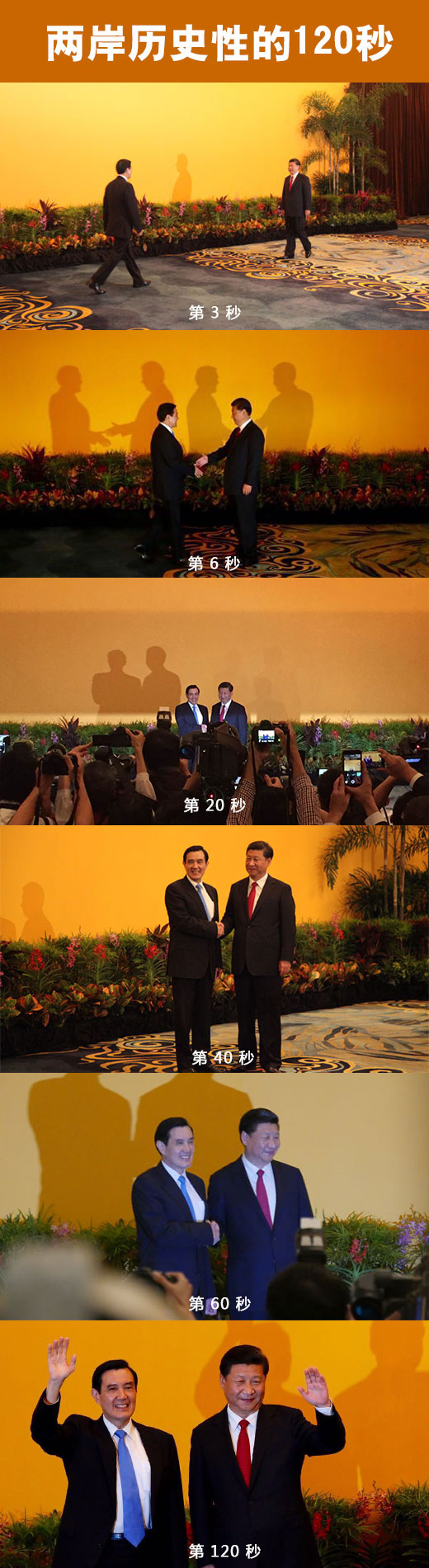 今天是一个非常特别的日子,两岸领导人见面,翻开了两岸关系历史性的一页。历史将会记住今天。