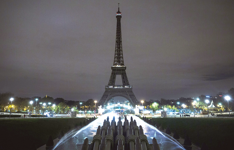 埃菲尔铁塔14日晚熄灯悼念遇难者。