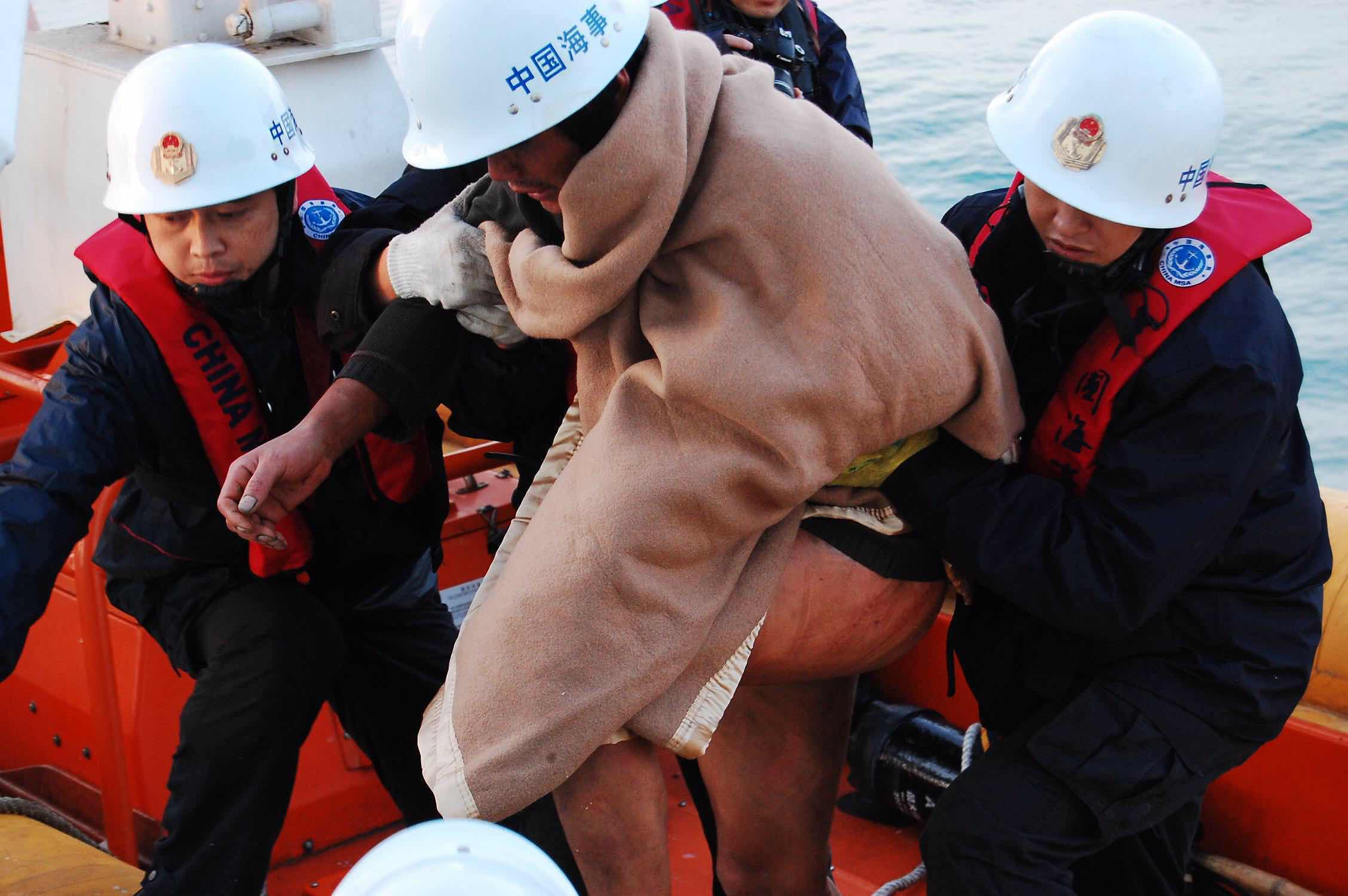 文汇网讯(记者 何易 通讯员 孙洪亮 摄影报道)今天下午15时58分,在长江口灯船东北方向约120海里处,海上搜救人员从已翻扣36个小时的渔船“苏赣渔运02886”轮救出1名被困渔民,目前获救渔民生命体征基本平稳,救援人员正对其进行复温等应急处置。
