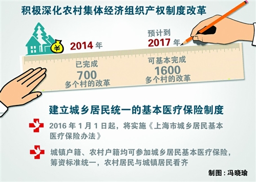 上海还正在积极深化农村集体经济组织产权制度改革,分类推进农村土地制度改革。今年,上海将基本完成农村土地承包经营权确权登记,推动土地规范流转,推动现代农业适度规模经营。在农村集体经济组织产权制度改革方面,去年本市已完成700多个村的村级经济组织产权制度改革,今年可达70%至80%,预计到2017年可基本完成1600多个村的改革。今年还启动了镇级改革试点,在把资产家底摸清的基础上,加快推进镇级农村集体经济组织产权制度改革。