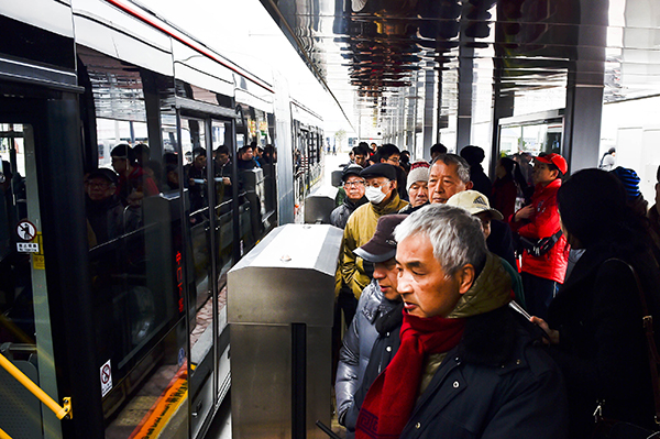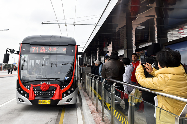 念念不忘,必有回响。历时一年多时间的建设,新版巨龙车——上海延安路中运量公交71路在今天(1日)正式开通载客试运营。挡不住市民的尝鲜热情,71路从终点站开出四五站路后,能容纳150人左右的车厢就已挤满乘客。中运量公交71路车队队长陈寄洲坦言,真正的考验尚未来临,等正月十五以后见分晓。