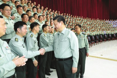 习近平亲切接见驻广西部队师以上领导干部、驻南宁部队团级单位主官和南部战区陆军机关正团职干部。新华社记者李刚摄