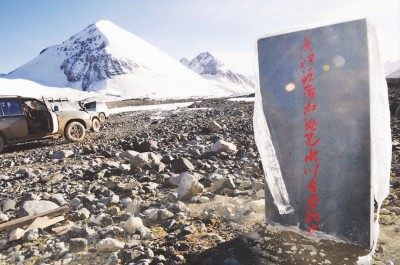 而今天,眼前是整个晶莹剔透的冰雪世界。各拉丹冬雪峰四周冰川覆盖的面积达七八百平方公里,有大小冰川130条。在安多县两位藏族向导的带领下,岗加曲巴冰川终于矗立在我们面前。但雪河、冰湖和冰渍石却令车辆无法靠近,沙志贵、郭熙灵按计划确定了竖立科考纪念碑的地点。