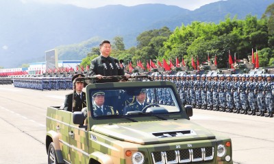 随后,习近平听取了驻香港部队工作汇报,并发表重要讲话。他指出,20年来,驻香港部队坚决贯彻党中央和中央军委决策指示,认真落实“一国两制”方针和香港特别行政区基本法、驻军法,出色完成以履行防务为中心的各项任务,展示了我军威武之师、文明之师形象,赢得广大香港同胞高度赞誉。
