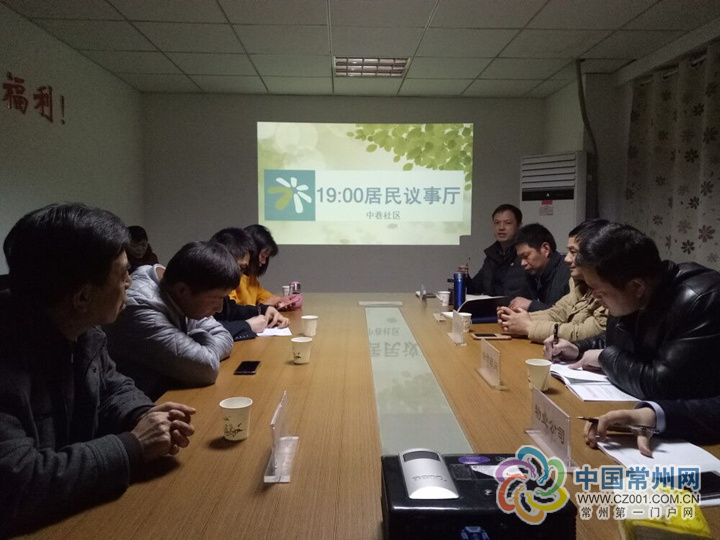 11月1日,晚上6点半,家住江苏常州凤凰湖壹号2栋的居民邱先生吃过晚饭,来到了物业办公室,社区工作人员顾国伟、刘伟忠已经等在那里。陆陆续续,又有十来位业主走进来。晚上7点,会议正式开始,当天要讨论的,是关于小区业委会与开发商物业公司续签合同事宜。这是常州市薛家镇中巷社区在凤凰湖壹号小区设立的19∶00议事厅。