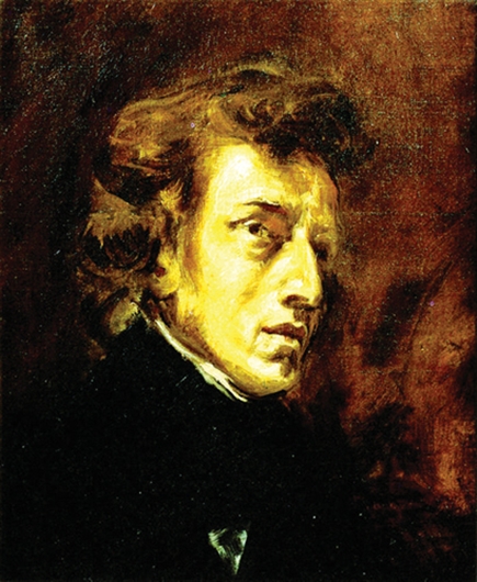 肖邦伏在钢琴上,完全不在意是否有人在听。他开始了一段随心所欲的即兴弹奏,然后停了下来。“继续,继续啊,”德拉克洛瓦喊道。“这不是结尾!”“这甚至不是开头。什么也出不来……只看见些游走的倒影,影子,形状。我想找到一种相宜的颜色,可是我连轮廓也找不着……”“你不可能只单单找到一样,”德拉克洛瓦说,“颜色和轮廓会一起出来的。”“要是我只能找到月光,那会怎样?”“那么你就能找到光影的反射。”德拉克洛瓦的这个想法似乎满足了这个神圣的艺术家。他又开始弹奏……随着我们耳中舒缓起伏的音乐声,宁静的颜色渐渐开始显露。突然,蓝色的音符凸显了出来,夜色随之将我们包围,湛蓝的,透明的。薄云展开奇异的形状,遍布天穹。被云彩环绕的月亮洒下大大的乳白色的光晕,将沉睡的颜色唤醒。我们梦想着一个仲夏之夜,坐在那里等待着夜莺开始歌唱。