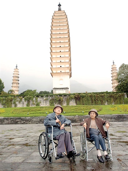 2004年9月27日,吴清源(左)和夫人在云南大理游览。 新华社发