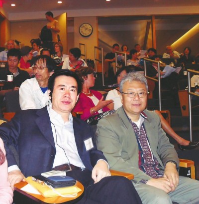2010年9月25日,张炜(左)在哈佛大学演讲,右为作家哈金。