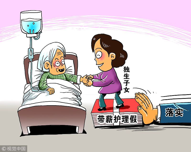 老人生病住院治疗,有子女陪在身边照顾,无疑会让老人更加欣慰。但长期以来,对于许多独生子女而言,父母年迈生病时,在照料时间的安排上是个大难题。日前,从全国老龄办2017年全国“十大老龄新闻”发布会上传来消息称,已有8个省 (区市) 通过地方立法建立了独生子女家庭老年人护理假制度,民间呼声正逐步转化为地方性法律法规。