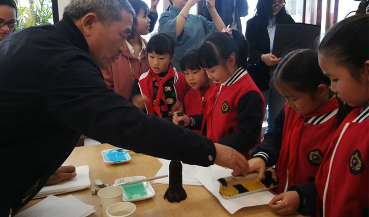 非遗项目雕版印刷走进社区,深受小朋友喜爱。(刘海波 摄)