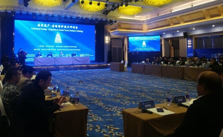 ▲25日在西安举行的“建筑遗产——古塔保护技术研讨会”现场