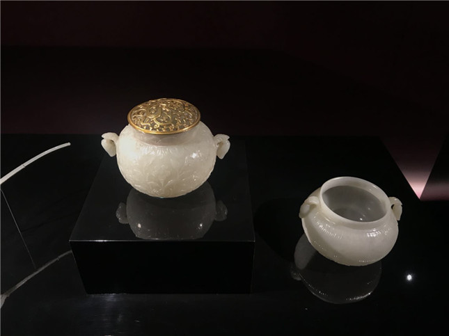 其中还有一件来自中国的器物颇值得关注,故宫博物院宫廷部主任王跃工特别介绍了一件印度玉杯,其内侧可见一首乾隆诗作,说明这原是宫廷收藏,而后流入民间。乾隆在这组诗中盛赞了莫卧儿玉器,皇帝本人亦收集了大量此类玉器。