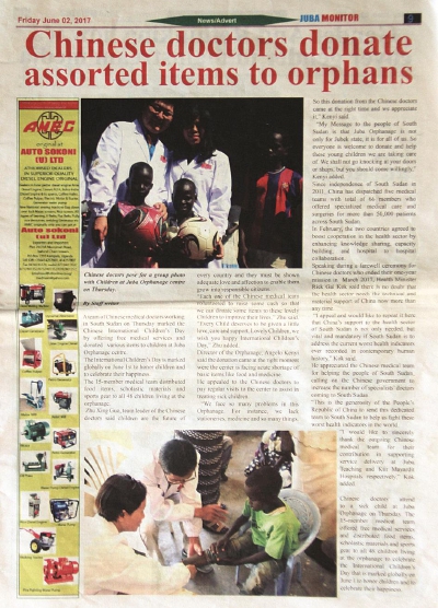 南苏丹当地媒体 《黎明报》这样报道中国医疗队: “南苏丹爆发武装冲突的危难时刻,在其他国家的援助人员纷纷撤离之际,只有中国医疗队坚守在炮火纷飞之中,继续给南苏丹人民以坚定的支持。 ‘中国是唯一一个愿意在南苏丹人民困难之际提供帮助的国家’。”