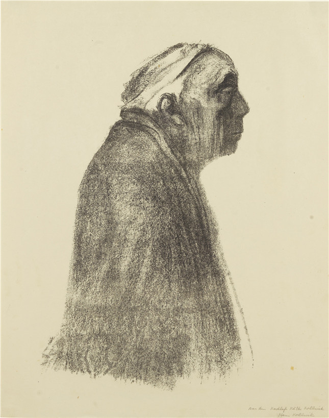 ▲凯绥·珂勒惠支(德国) 面朝右侧自画像 48cm×29.5cm 石版 1938