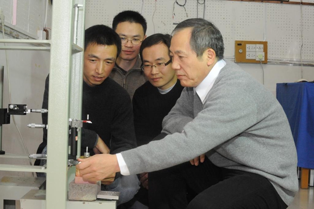 ▲ 罗俊院士(右)指导研究团队