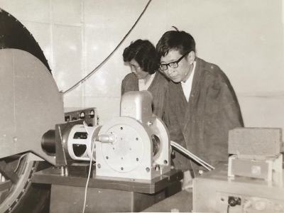 上世纪六十年代,匡定波(右)在实验室研制红外地平仪。