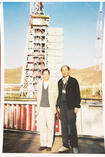 上世纪八十年代,匡定波(左)在太原卫星发射中心。